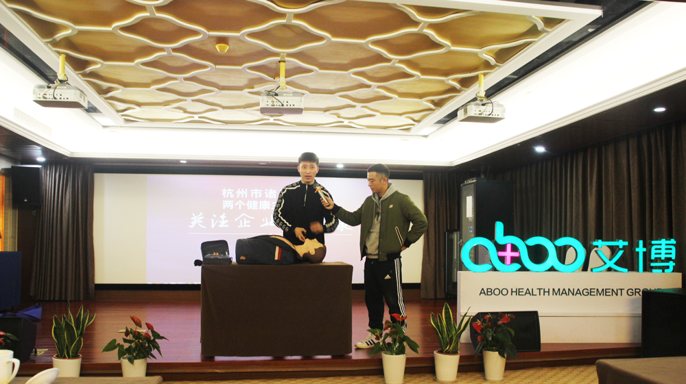 杭州市AED立法走在眾(zhong) 城市前列。本次活動,商會(hui) 特地組織急救知識培訓:人工心肺複蘇和體(ti) 外自動除顫器AED的使用。現場企業(ye) 家代表學習(xi) 積極性強。