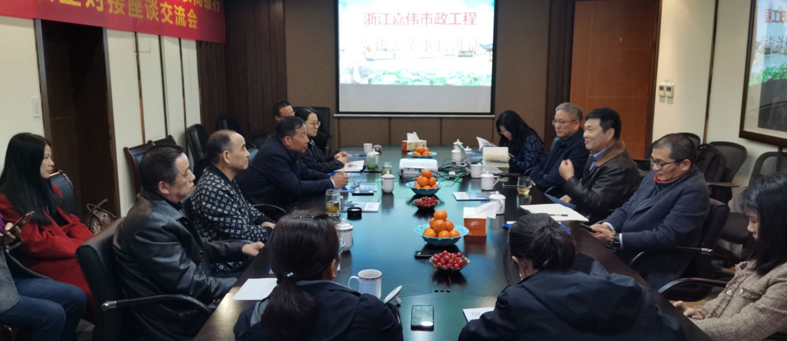 浙江嘉偉(wei) 市政工程有限公司董事長周偉(wei) 光對李會(hui) 長、龔行長一行的到來表示熱烈的歡迎。