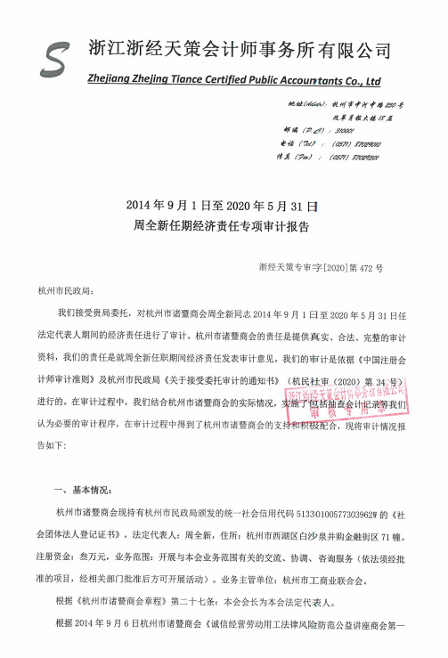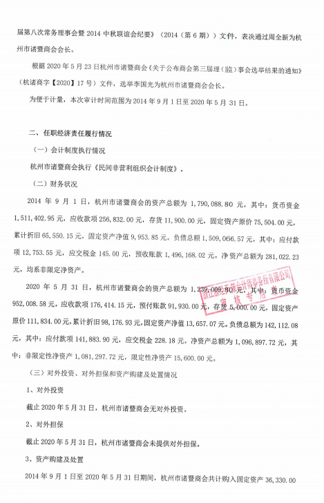 2014年9月1日至2020年5月31日周全新任期經濟責任專項審計報告