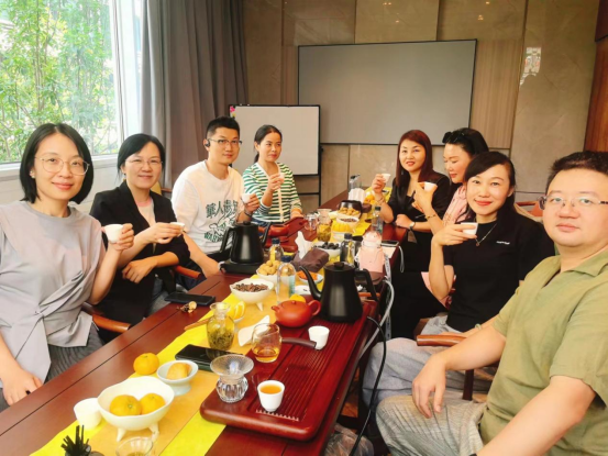 劉瓊總經理熱情歡迎來訪,並向大家介紹了公司經營的整體(ti) 情況。劉瓊夫婦是以父輩產(chan) 業(ye) 輔料轉型為(wei) 新型產(chan) 業(ye) 的新一代年輕企業(ye) 家,從(cong) 傳(chuan) 統產(chan) 業(ye) 轉型為(wei) 多產(chan) 業(ye) 鏈企業(ye) 。她說,作為(wei) 年輕企業(ye) 家,不但要傳(chuan) 承好老一輩留下來的傳(chuan) 統產(chan) 業(ye) ,更要創新發展新型產(chan) 業(ye) ,如今發展有教育、牙科診所等,目前還開拓了境外業(ye) 務,於(yu) 友邦保險(國際)有限公司任職高級財富管理經理,核心業(ye) 務是為(wei) 客戶提供健康、退休教育以及財務策劃等方麵信息和規劃,以及協助客戶獲取香港身份,本次走訪的邈墨•東(dong) 茶館隻是其中一個(ge) 領域。劉瓊作為(wei) 商會(hui) 副秘書(shu) 長,為(wei) 人性格內(nei) 斂也比較低調,雖平時家事、事業(ye) 很忙,但總是熱情參與(yu) 商會(hui) 活動,她總結說到星空体育在线网页版登录官网對在杭的諸商企業(ye) 提供了很好的相互學習(xi) 交流的平台,也深感鄉(xiang) 情的溫度,表示希望能為(wei) 商會(hui) 的發展貢獻自己一份力量!