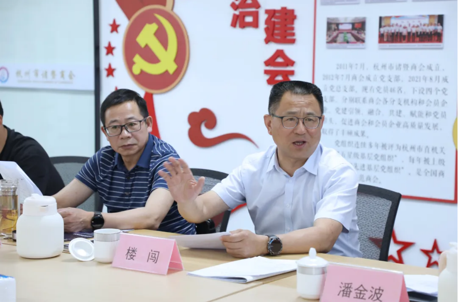 5月13日, 諸暨市委統戰部、諸暨農(nong) 商銀行到商會(hui) 開展座談會(hui) 。諸暨市委常委、統戰部部長樓闖,常務副部長蔣誌軍(jun) 出席會(hui) 議並講話,諸暨農(nong) 商銀行黨(dang) 委書(shu) 記董事長潘金波,黨(dang) 委委員、副行長朱興(xing) 強,營業(ye) 部總經理袁焊挺,商會(hui) 會(hui) 長、黨(dang) 總支書(shu) 記李國光,常務副會(hui) 長兼西湖會(hui) 長楊國飛、臨(lin) 安會(hui) 長郭益鋒、錢塘會(hui) 長何望君、醫專(zhuan) 委主任陳文斌、法專(zhuan) 委主任陳紀鋼,常務副會(hui) 長、黨(dang) 總支副書(shu) 記王毅,常務副會(hui) 長許旭宇、酈麓濱、周劍鳳,執行秘書(shu) 長宣正榮及秘書(shu) 處等20餘(yu) 人參加會(hui) 議。
