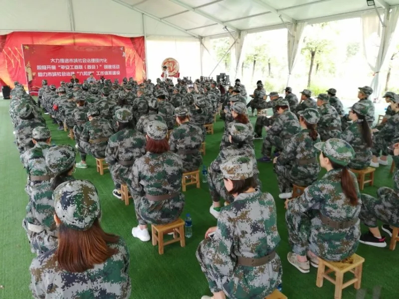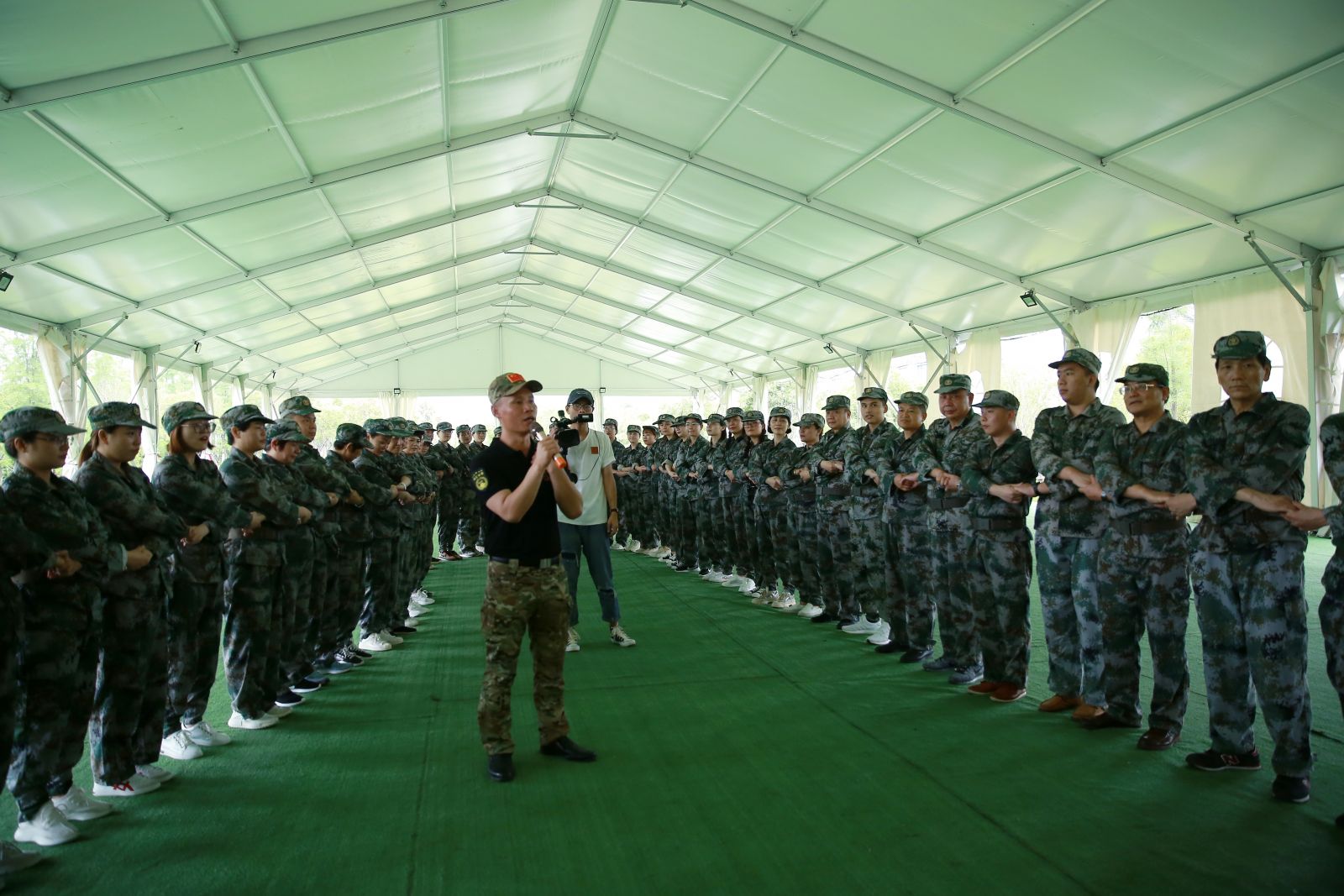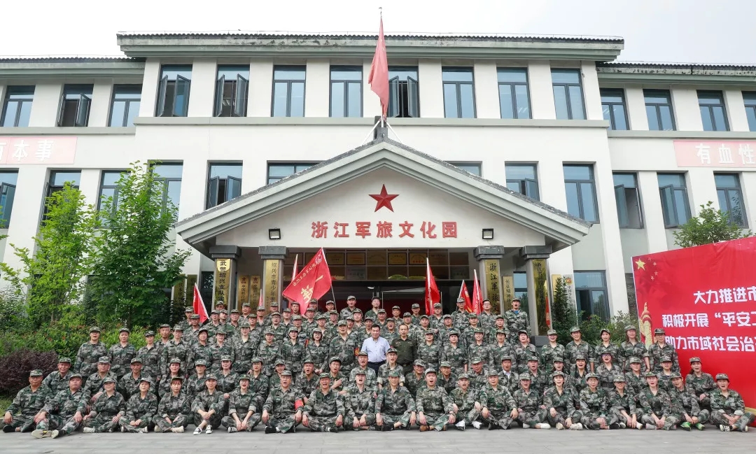 根據工商聯的要求,商會(hui) 秘書(shu) 處提前聯係落實參加點和講解人員,商會(hui) 周尚華常務副會(hui) 長單位在楓橋鎮的杭派服飾基地辦公室主任等為(wei) 分組交叉參觀,午餐安排作了精心周到的準備,保證參觀學習(xi) 的順利。在浙江軍(jun) 旅文化中心,大家身著軍(jun) 裝,分成七個(ge) 連隊,舉(ju) 行開班儀(yi) 式,奏國 歌、授營旗、送八一軍(jun) 旗、教官表演、培訓承諾等,讓大家體(ti) 驗了軍(jun) 營的生活,見識了教官們(men) 的專(zhuan) 業(ye) 風采和精神麵貌。